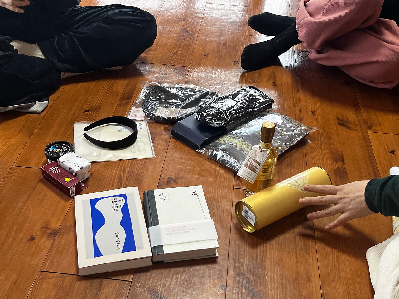 고심끝에 준비한 선물들. 나를 위한 선물은 바로 이거야, 엉뚱한 선물과 마니또를 고르며 얼마나 웃었는지 모른다.