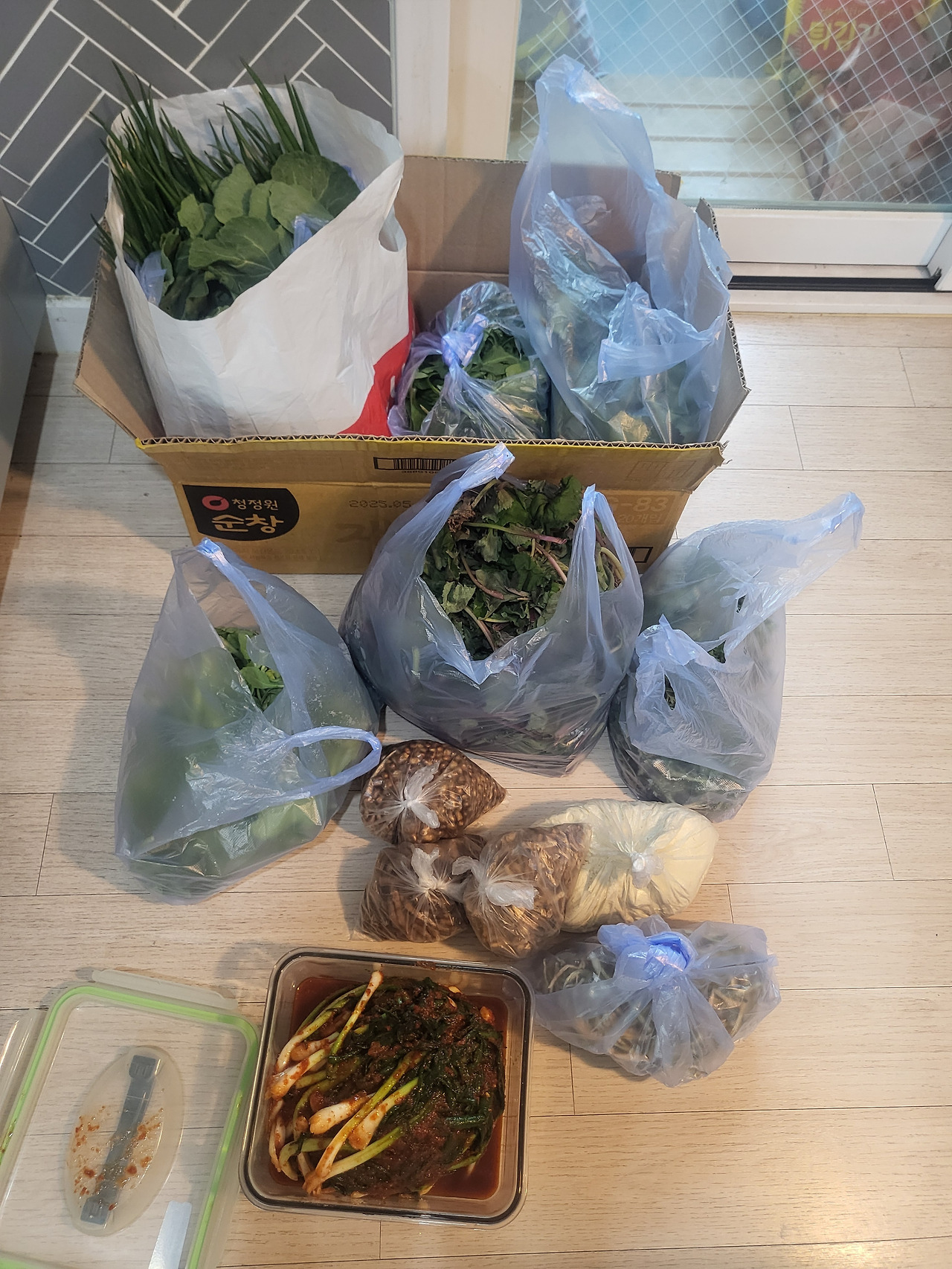 마당에 쑥, 냉이, 머위나물을 펼쳐놓고 손질을 시작했다. 어머니께서는 어느새 텃밭에서 시금치, 쪽파, 유채나물을 한가득 뜯어오셨다. 똑같이 나눠 가져가란다.