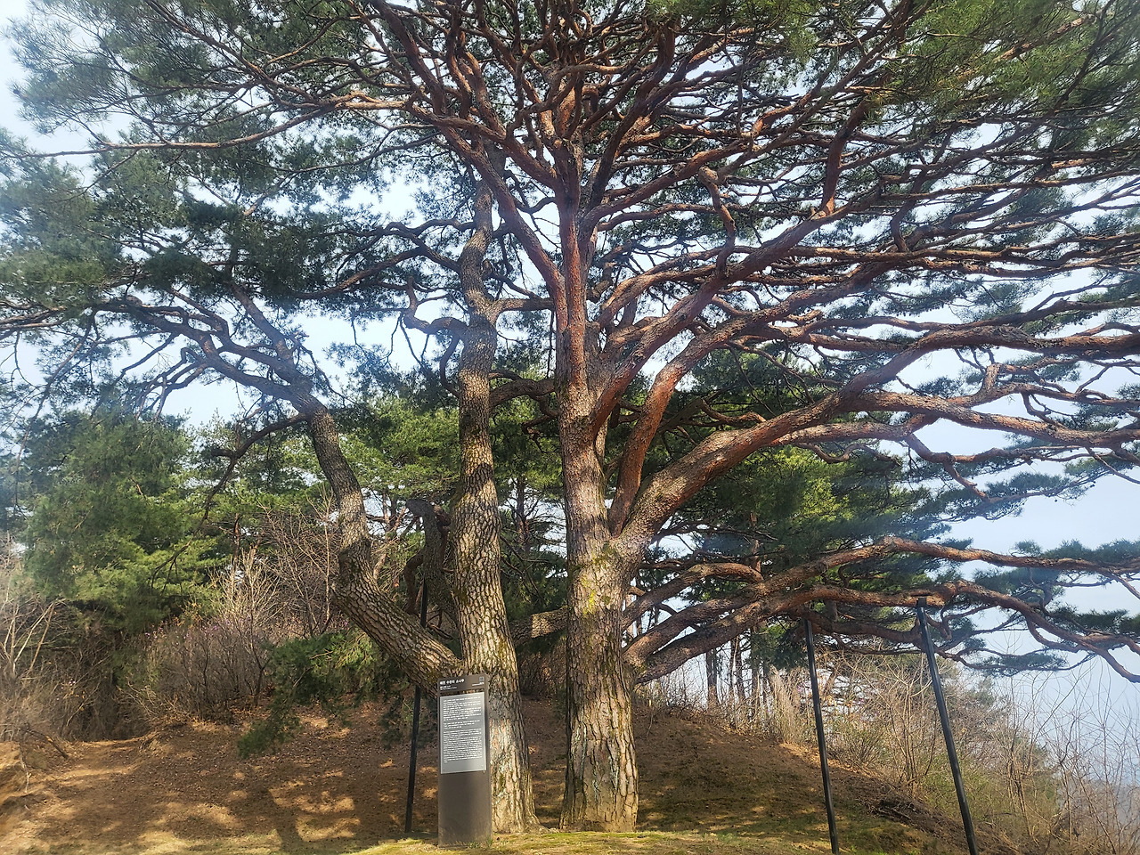 승용차가 드디어 해발 500미터 산 꼭대기에 도착했다. 감탄이 절로 터져 나왔다. 첩첩이 쌓인 산 저 아래로 내가 태어나고 자란 고향마을도 보였다. 부부나무라 불리는 600년 된 소나무의 자태도 늠름했다. 한쪽에서 보면 분명 한 그루인데 실제로는 두 그루인 쌍간(뿌리에서 두 그루로 자람)인 이 나무를 동네사람들은 마을의 수호신처럼 모신다고 한다. 부부나무 옆 산꼭대기집은 동창 수호네 집이라고 한다. 있을 리 만무한 친구의 이름을 소리쳐 불렀다.