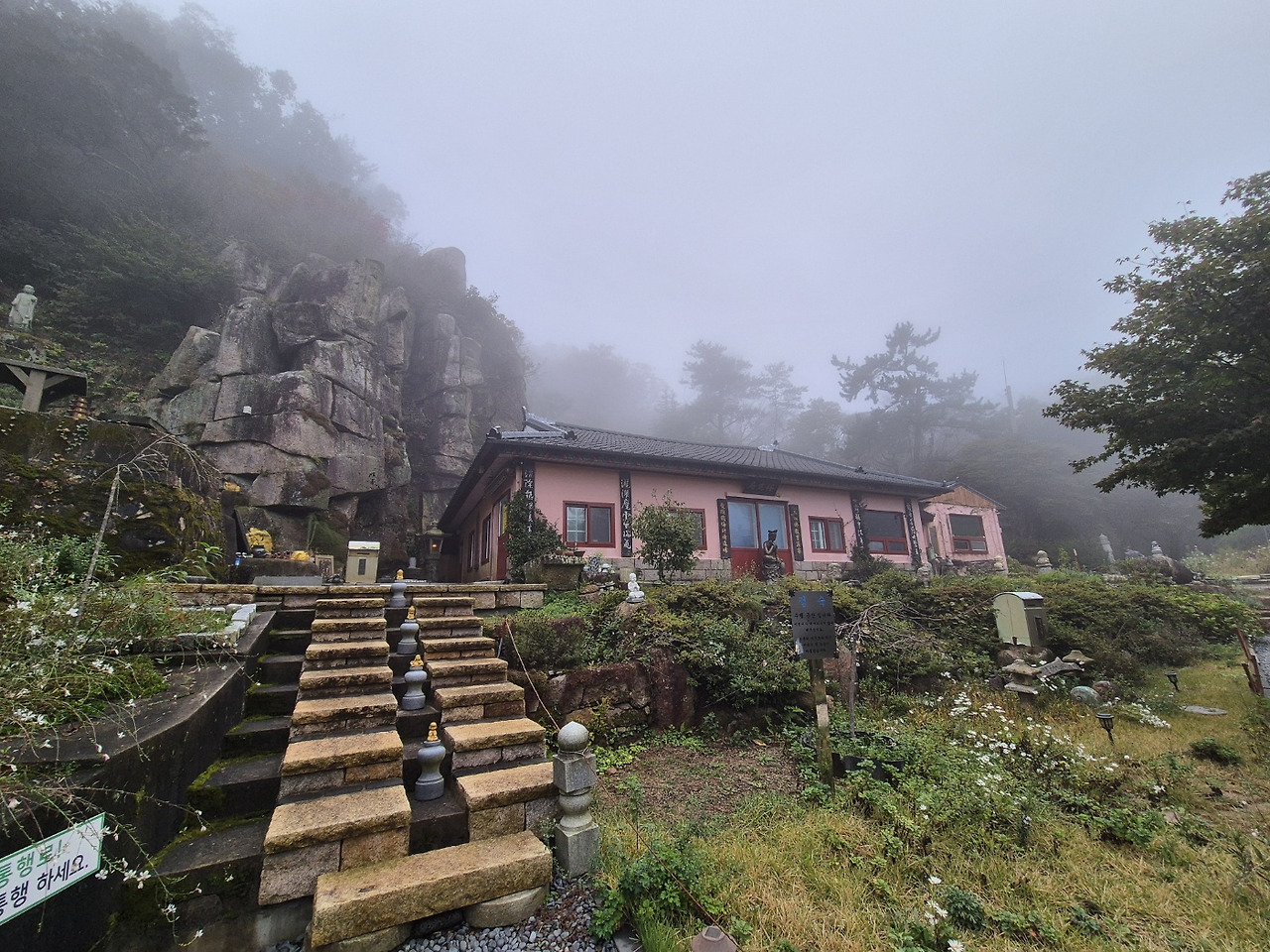 하산길 바윗길이 미끄러워 송쌤의 무릎과 발목이 걱정됐다. “송쌤? 괜찮아요? 바위 미끄러워요! 조심하세요.” 막무가내로 대책 없이 산 댕기다 이런 날 올 줄 알았다. 내 탓이요 내 탓이요, 준비성 없는 나를 자책하며 내리막을 걸었다.