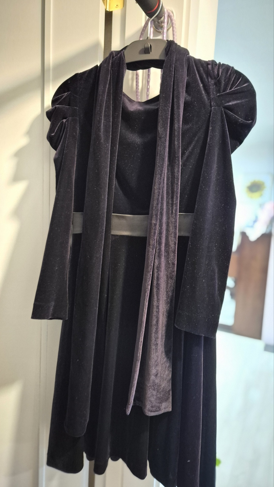 매년 아이들과 첫 만남은 벨벳 원피스로 시작한다. 언뜻 보면 까만색이지만 환한 햇빛 아래에 서면 짙은 보라색인데 깜장과 보라를 넘나드는 그 신비로운 느낌이 좋다. 어깨에 살짝 들어간 퍼프는 귀여운 느낌을 주고 까만색 밴드로 잘록한 허리를 강조한 디자인은 통통한 체형을 제법 날씬하게 보이게 할 것이다. 무릎까지 내려간 여성스러운 플레어 주름은 1년을 함께 할 담임선생님이 차분하고 지혜로운 사람일 거라는 기대를 주기에 충분하다. 기다란 사각 목도리가 가슴 위로 늘어뜨려져 포근한 느낌의 이 원피스를 3월 첫날엔 늘 고민 없이 입는다.