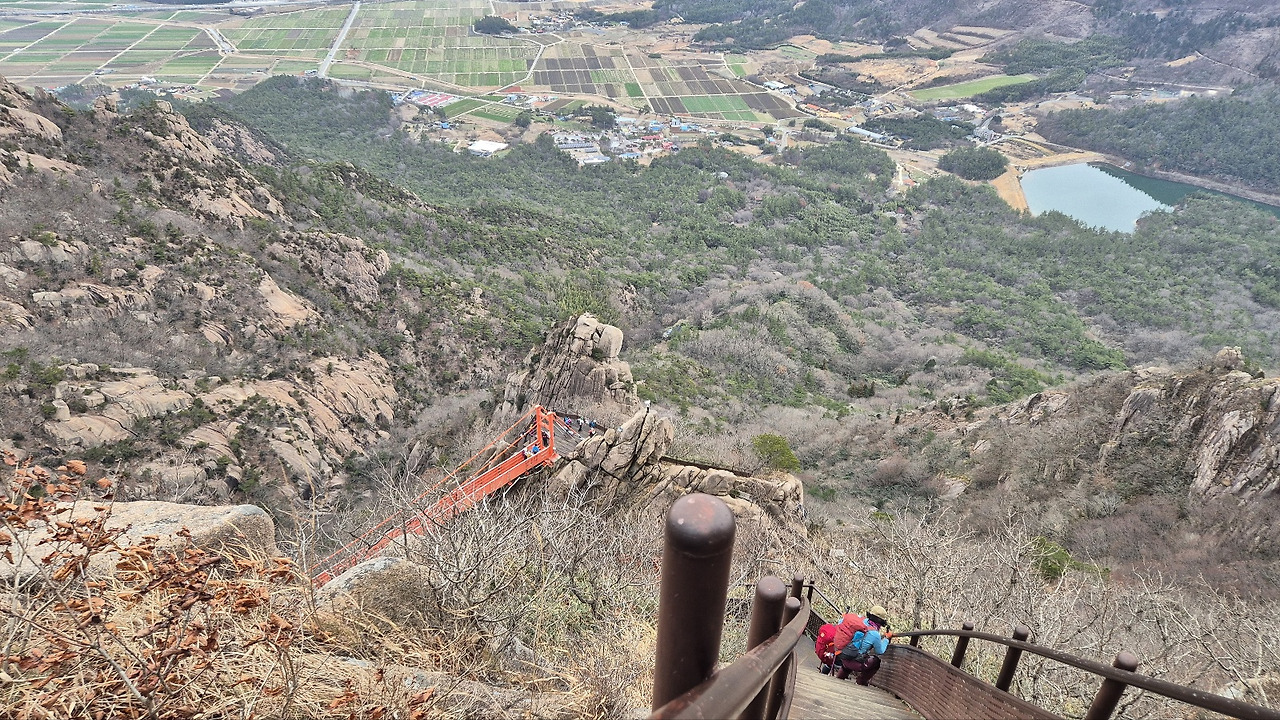 삐죽삐죽한 능선과 정상을 바라보며 걷는 길이 월악산 시즌1이었다면 사자봉을 지나 구름다리를 건너는 하산 코스는 또 다른 재미의 시즌2다. 오르락내리락을 반복하며 아찔하고 가파른 계단 길을 디뎌야 ‘구름다리’에 설 수 있다. 산행 시작 후 네 시간이 흘렀다. 이쯤 되면 쉼 없는 걸음에 몸 이곳저곳에서 삐걱거리는 소리가 들린다.