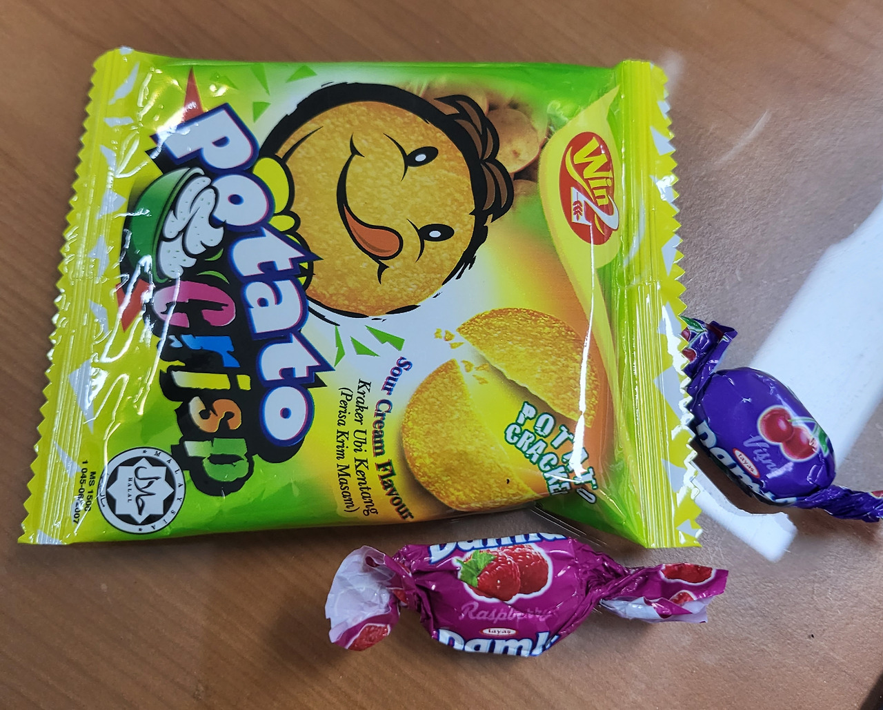 책상 위에 과자와 사탕이 자꾸 등장한다.