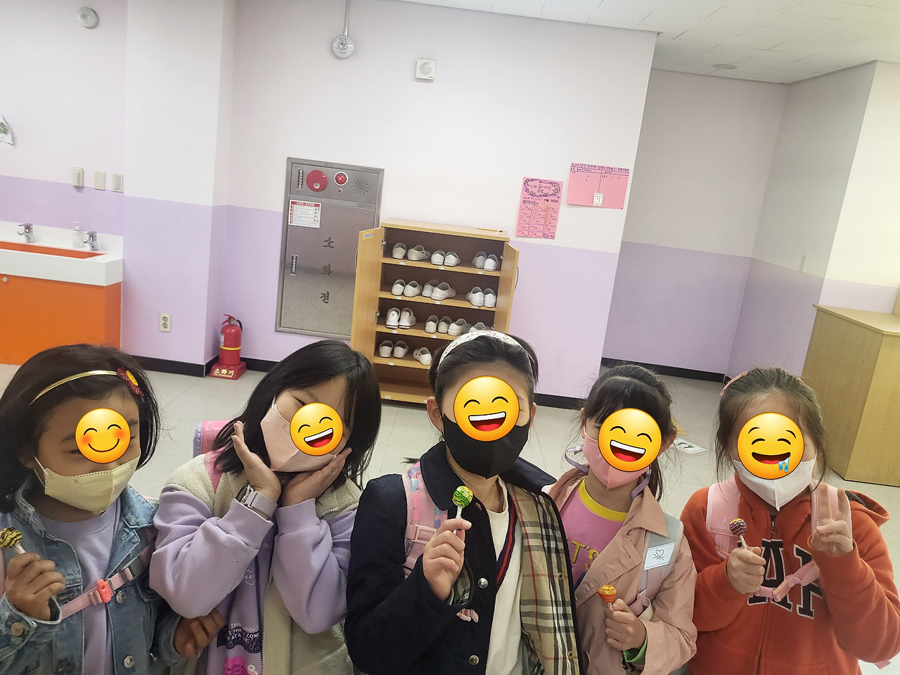 “민아야, 승희야, 너희들 사탕 받으러 왔어? 선생님 보러 왔어?”