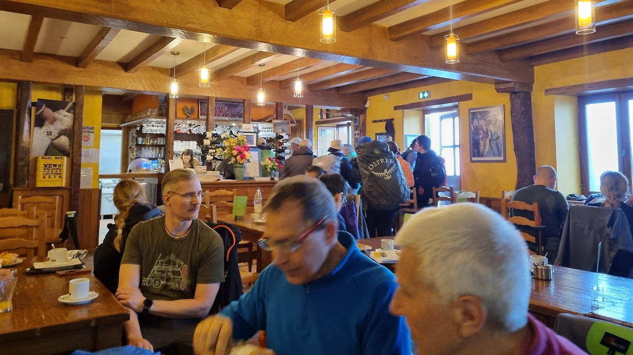 그날 내 일정은 오리손 산장을 지나 론세바예스까지 쉬지 않고 가야 했는데 그날따라 비가 소나기처럼 굵게 안 오지만 미스트처럼 흩날리고 해발고도가 높아지면서 점점 추워지고 있었는데 그때 눈 앞에 나타난 바는 안식처와 다름없었다. 오리손에는 알베르게와 식당을 같이 운영하는 시설이 하나밖에 없어서 모든 사람들이 여기서 먹고 자고 쉬고 가는 곳이었다.