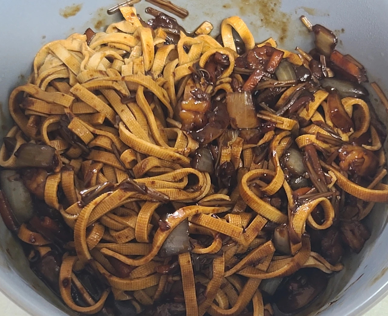두부면과 짜장을 섞으면 꽤 맛있고 포만감이 생긴다.