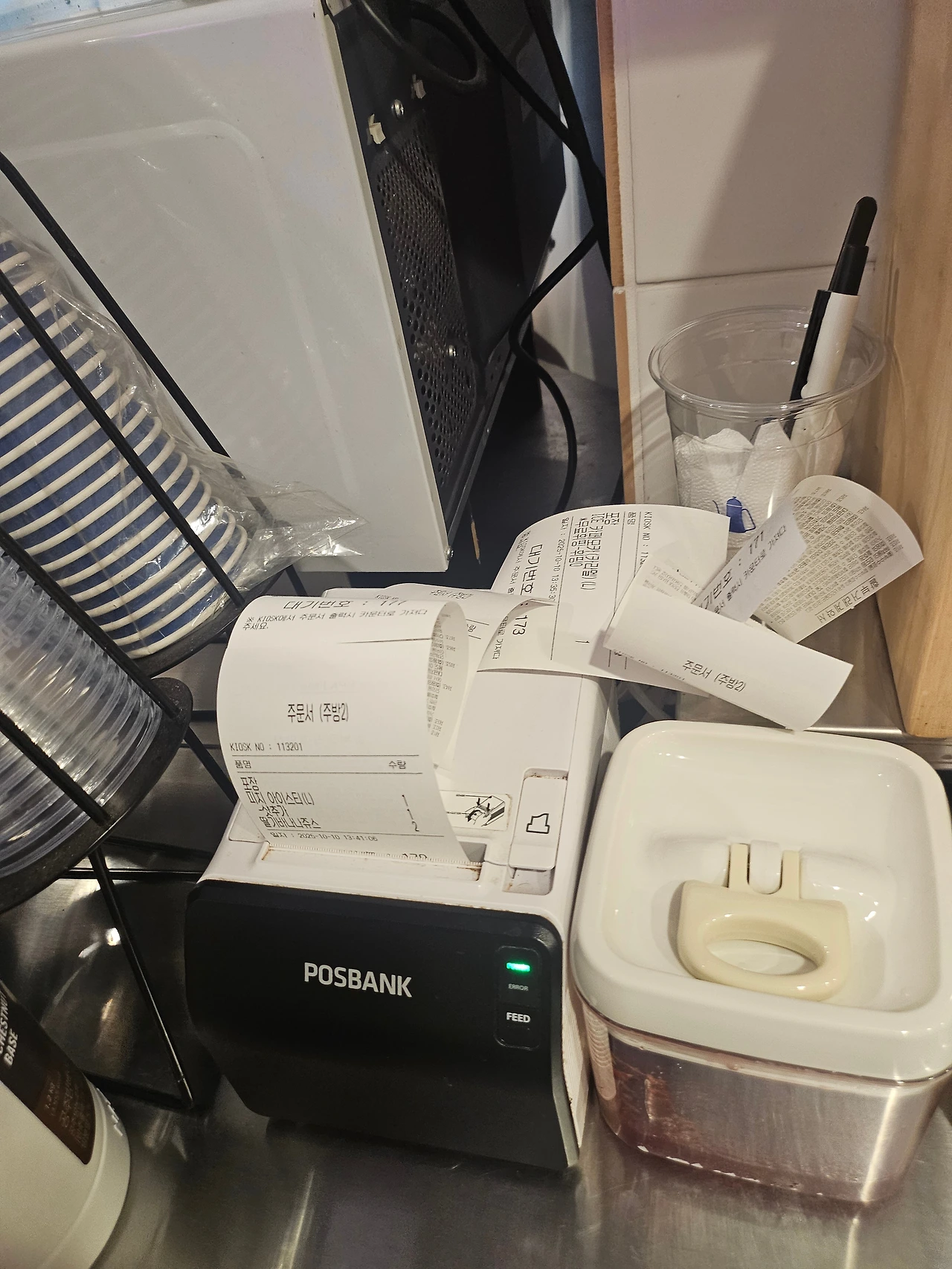 폭풍같은 인사이동(?)이 마무리 되었을때 카페에는 새로운 팀장과 매니저가 카페에서 부지런히 샷을 내리고 손님응대에 열을 올리고 있다. 첫 인사말이 오가기도 전에 역시나 쉴새없이 영수증을 토해내는 포스기를 잠깐 노려보았다. 그러거나 말거나 메뉴가 적힌 영수증 종이는 어쩔껀데, 움직여. 라고 빽빽~ 존재감 과시에 열을 올리고 있다.