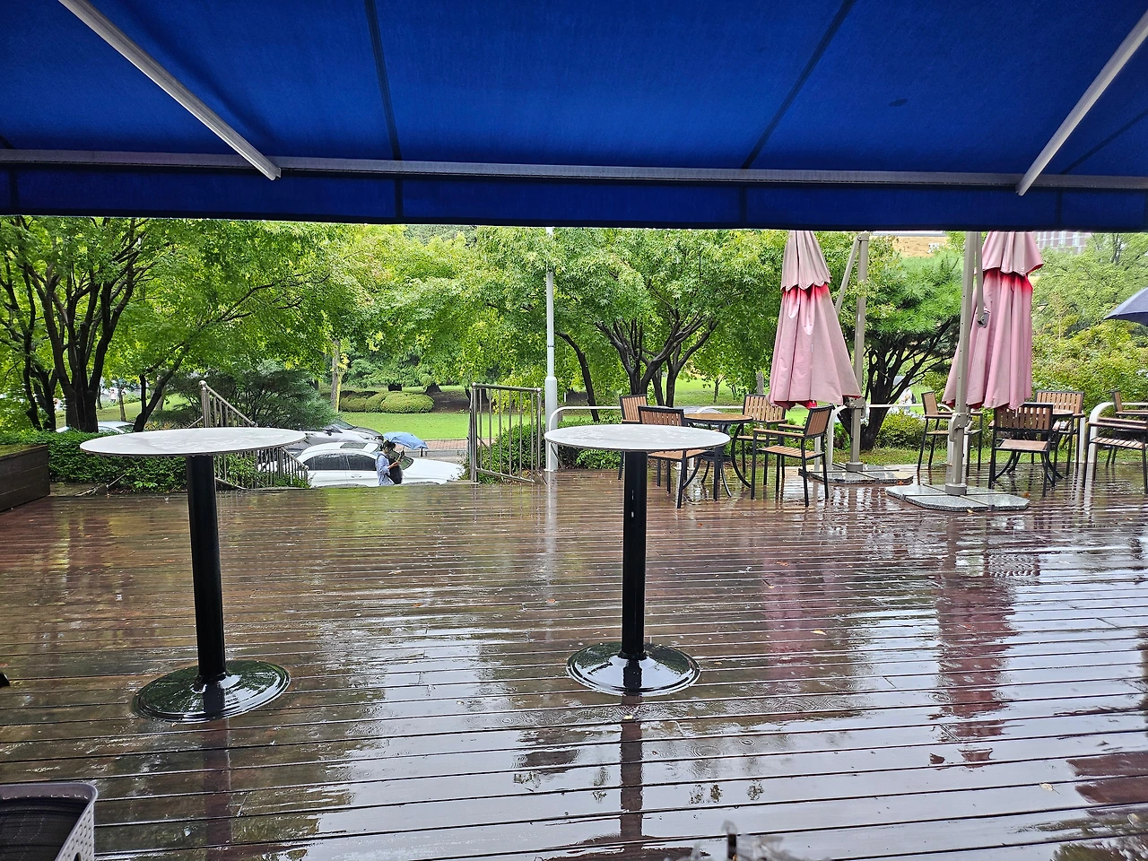 평상시면 엄청난 줄로 학생들이 바글거리는 시간인데. 방학이라고 학생들 없는 테라스가 이리 어색할줄이야