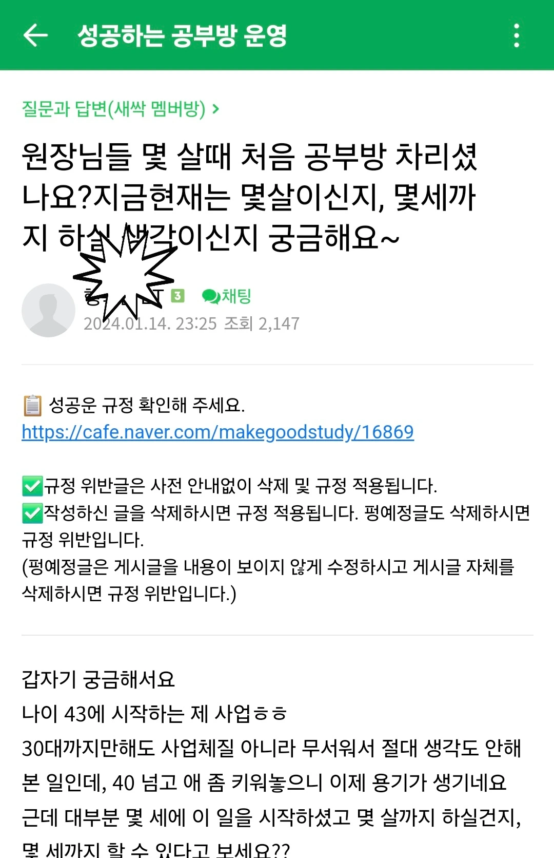 성공운 카페에 글 하나가 관심을 끌었다