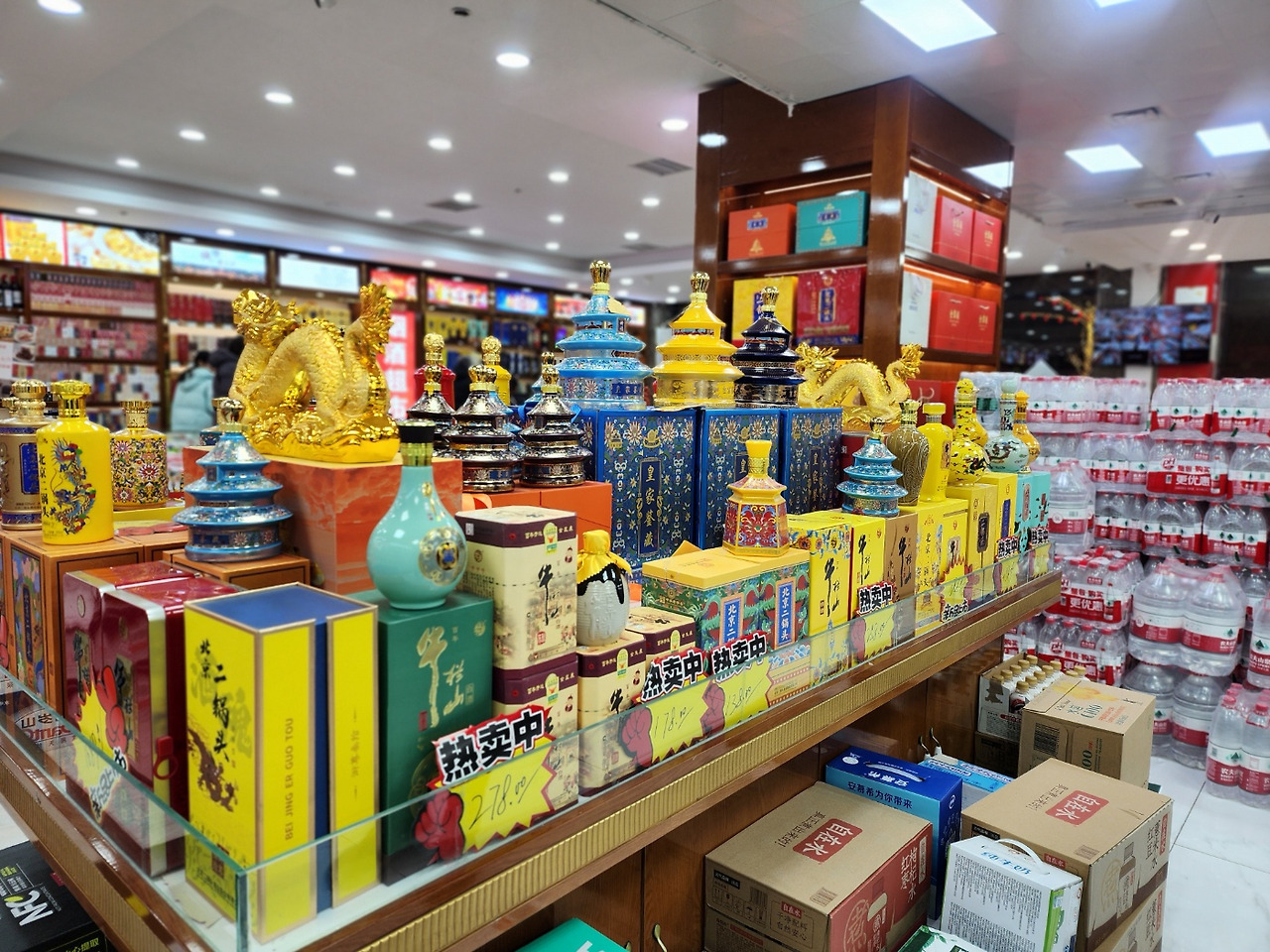 왕푸징에서 북경 오리는 못 먹었지만, 애주가로서 중국 술에 대해서는 타협할 수 없었다. 그래서 눈에 띄는 기념품점에 들어갔다. 자금성 모양 술, 황금용 모양 술... 번쩍번쩍한 한 것들이 본인 마음을 사로잡았다.