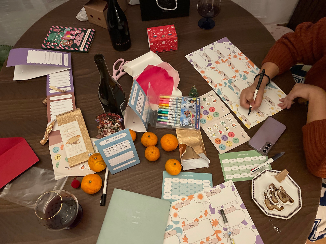 12월 초부터 약속을 해 둔 회고 모임이었다. 12월 17일에 소민님과 만나서 같이 회고하기로 했다. (3일부터 독감과 장염 두 번을 앓으면서도 17일 전엔 낫겠지, 나아야할텐데! 했는데 15일부터 회복해서 모임에 갈 수 있었다!) 소민님이 만든 회고 키트로 월별로 회고 키워드를 적어보는데, 폰 캘린더와 폰 사진첩 등을 살펴보면서 1년을 훑었다.