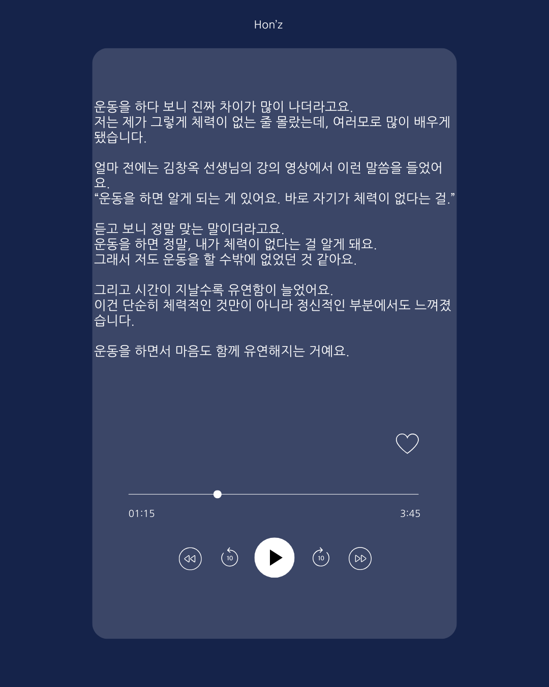 “운동을 하면 알게 되는 게 있어요. 바로 자기가 체력이 없다는 걸.”