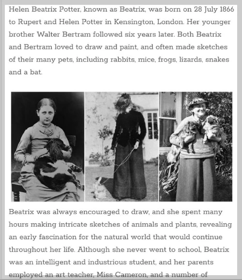 베아트릭스 포터(1866~1943)가 살았던 시대와 그녀의 행보를 이해하면 위 글의 의미가 더욱 명확해집니다.