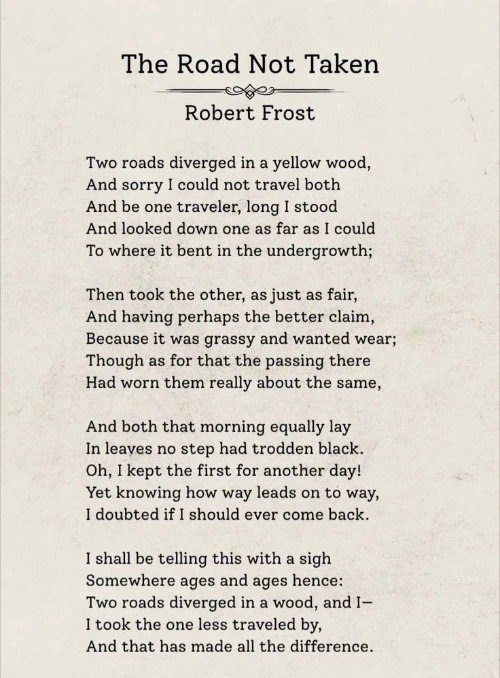 프로스트는 이 시를 통해 '선택의 무게'와 '되돌릴 수 없는 시간'에 대해 노래했습니다. 그가 걸어온 거친 삶의 궤적을 생각하면, 이 시는 단순한 자연시가 아니라 고독한 생존자의 독백처럼 다가옵니다.