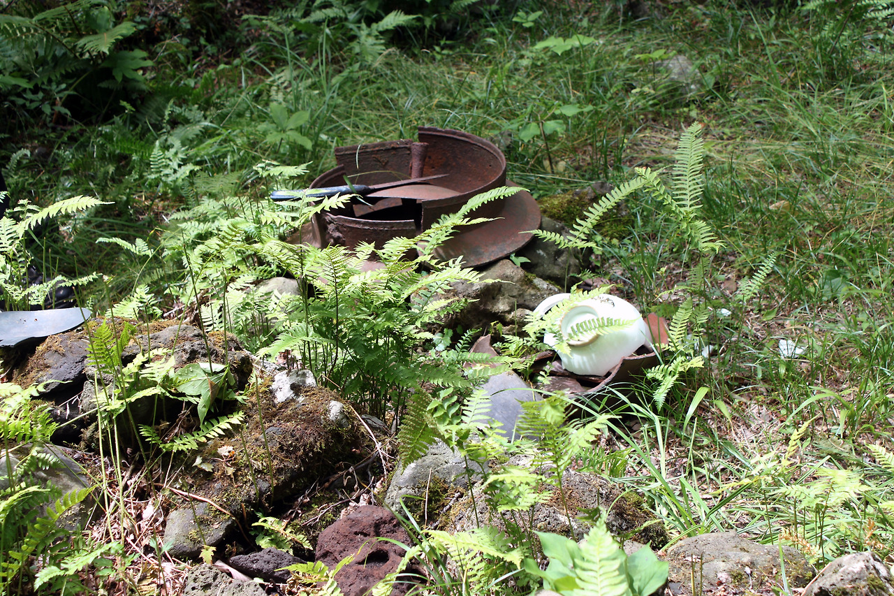 산사람들이 사용했을 부서진 가마솥과 그릇들
