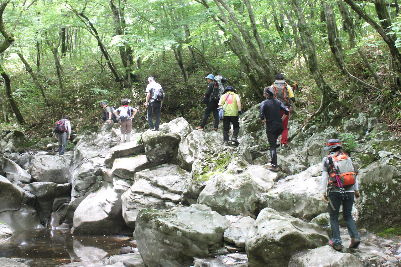 진수내를 건너는 이덕구 산전 답사팀, 2017년 6월 7일