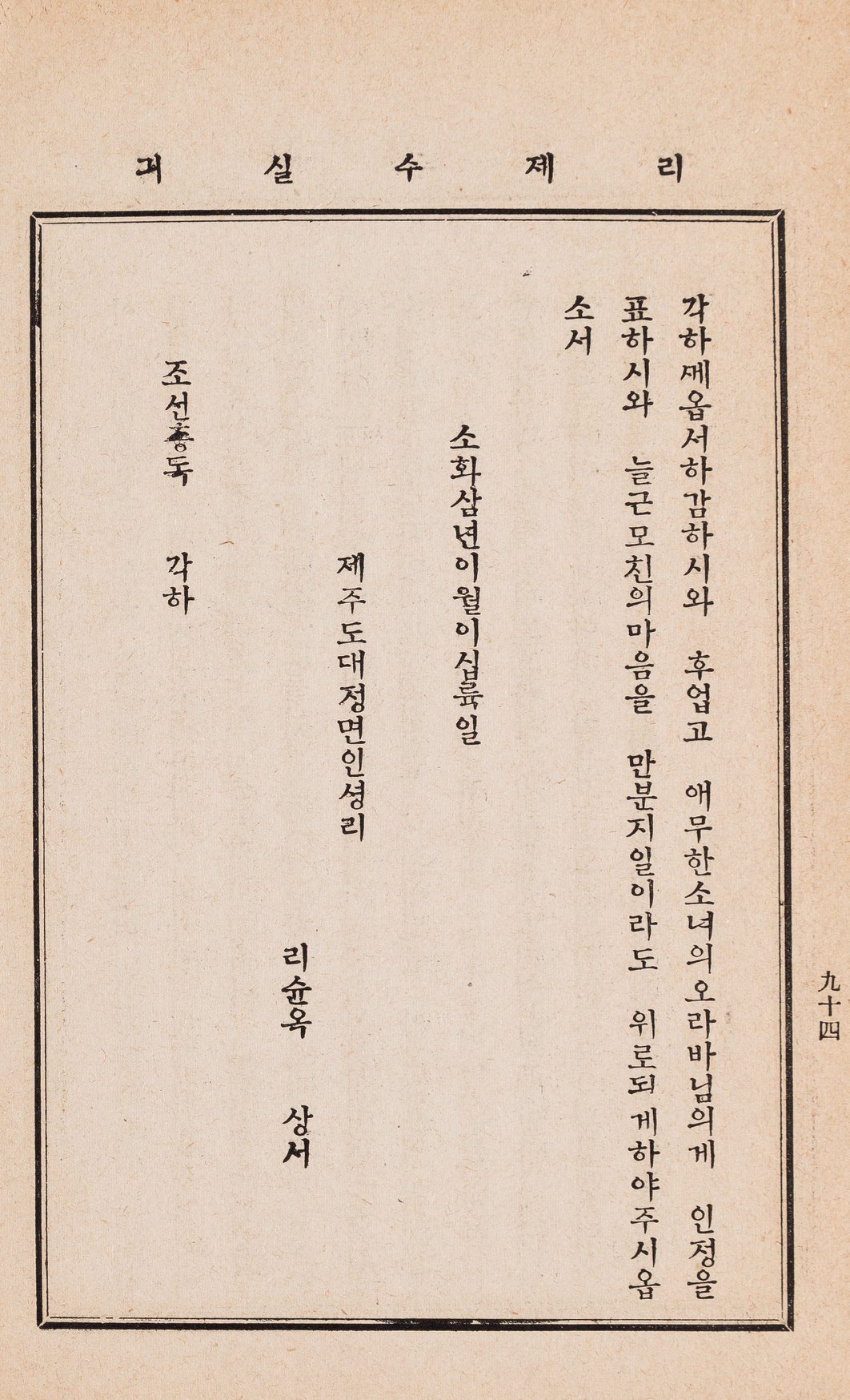 오라비의 신원을 한평생의 소원으로 삼았던 이순옥은 열한 살 조카를 양자로 들여 오라비의 대를 잇게 했다. 때로는 새벽에 목욕 재계하여 정화수를 떠놓고 오라비의 넋을 위로했다. 다행히 ‘1901년 제주항쟁기념사업회’ 등 뜻있는 사람들이 과거사의 진실을 밝히는 일에 나서고 있다. 새해 신축년은 그녀의 비원을 조금이나마 더 풀어줄 것인가?
