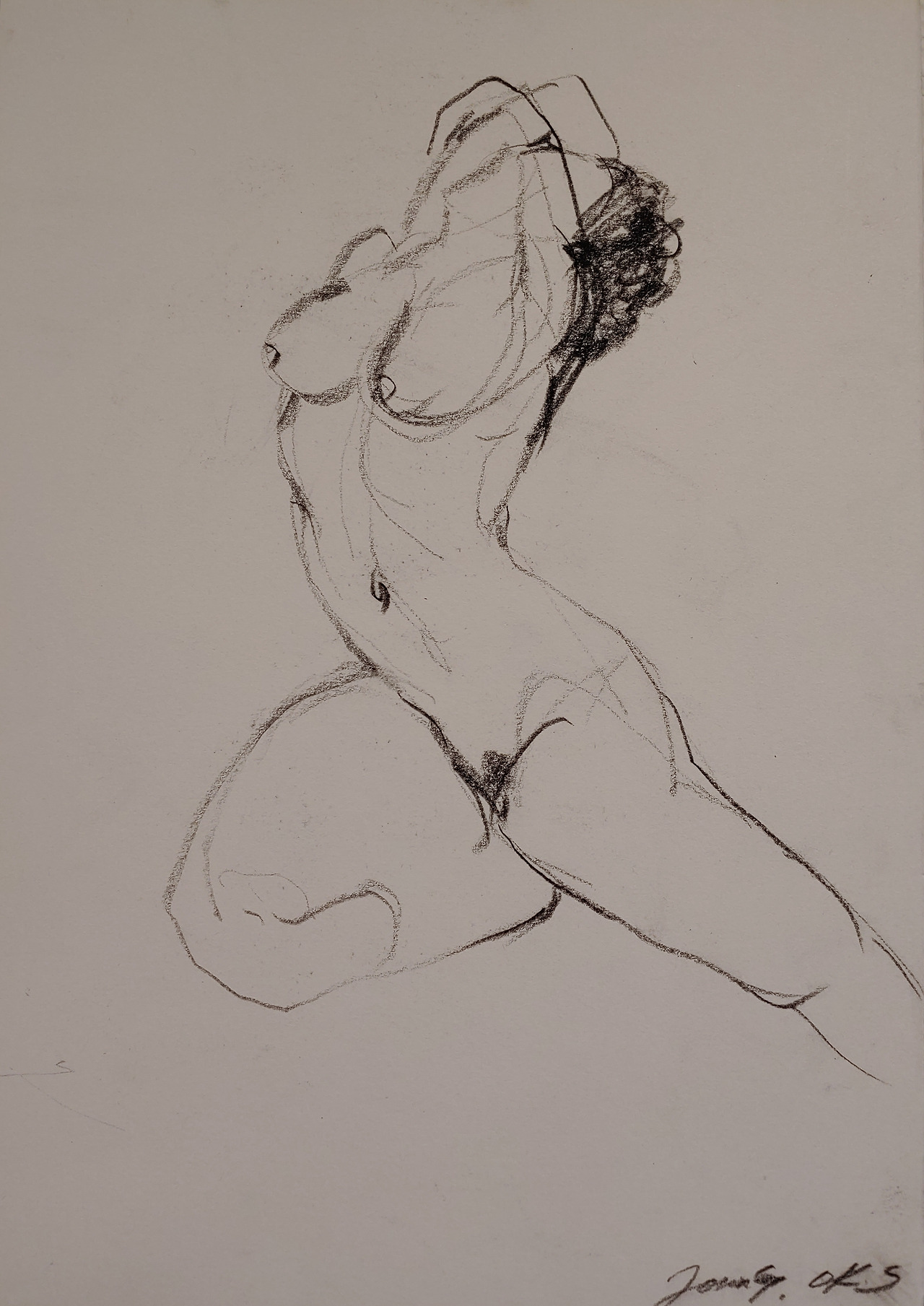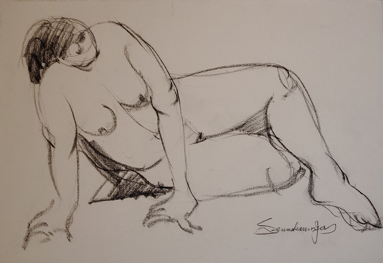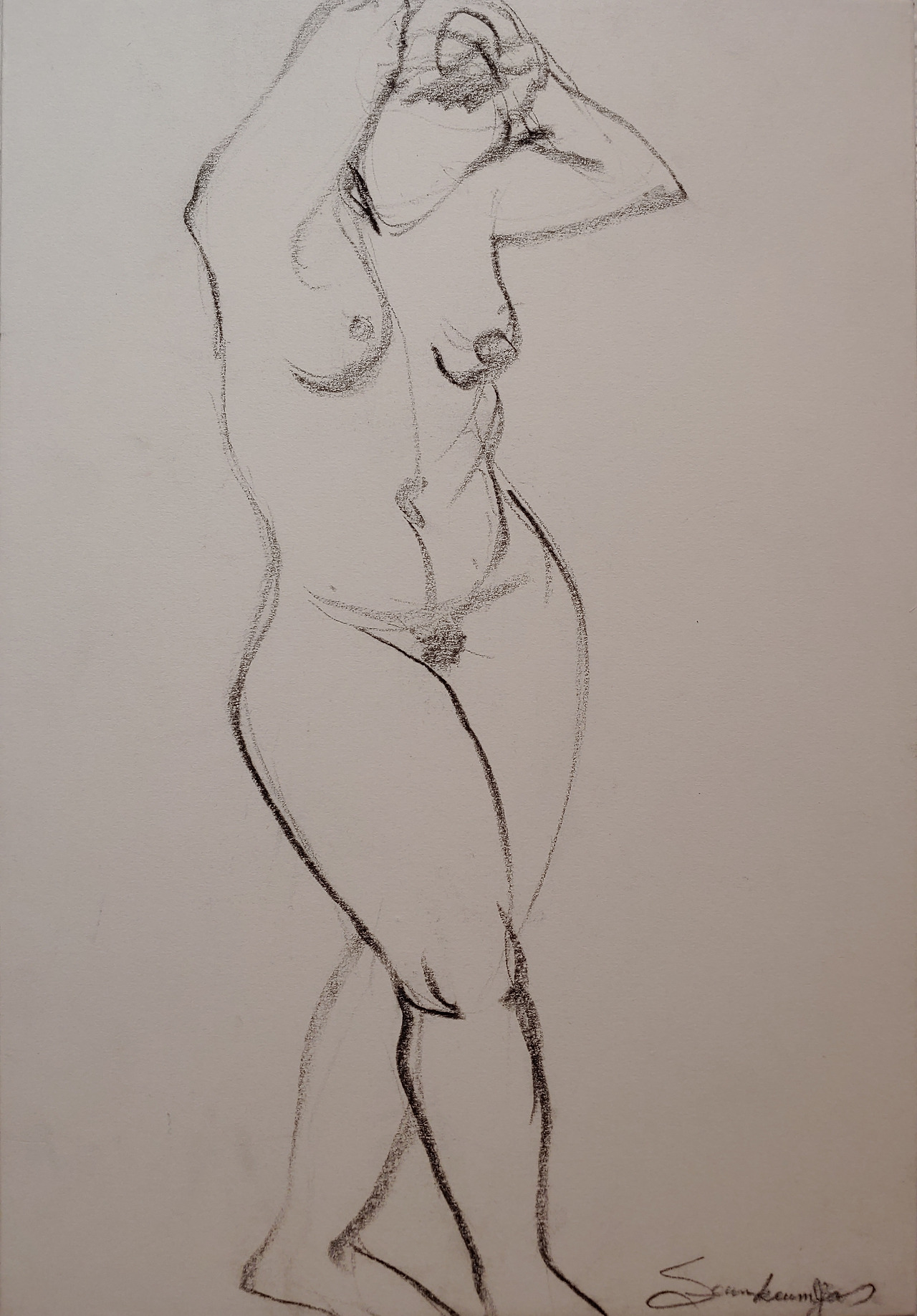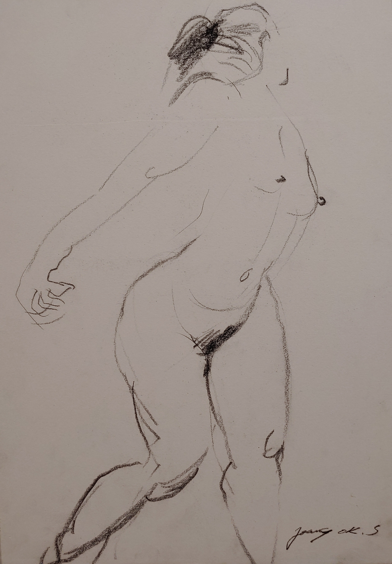 이번 전시에는 먹, 수채, 잉크, 콘테, 목탄, 아크릴 등 다양한 재료와 기법으로 인체의 힘찬 에너지가 담긴 작품들을 선보였다. 짧고 간결한 필치와 역동감 넘치는 작품들은 순수함 속에 힘이 넘쳐 보였다. 그림을 감상하는 내내 분발하라는 내면의 내 목소리를 들었다.