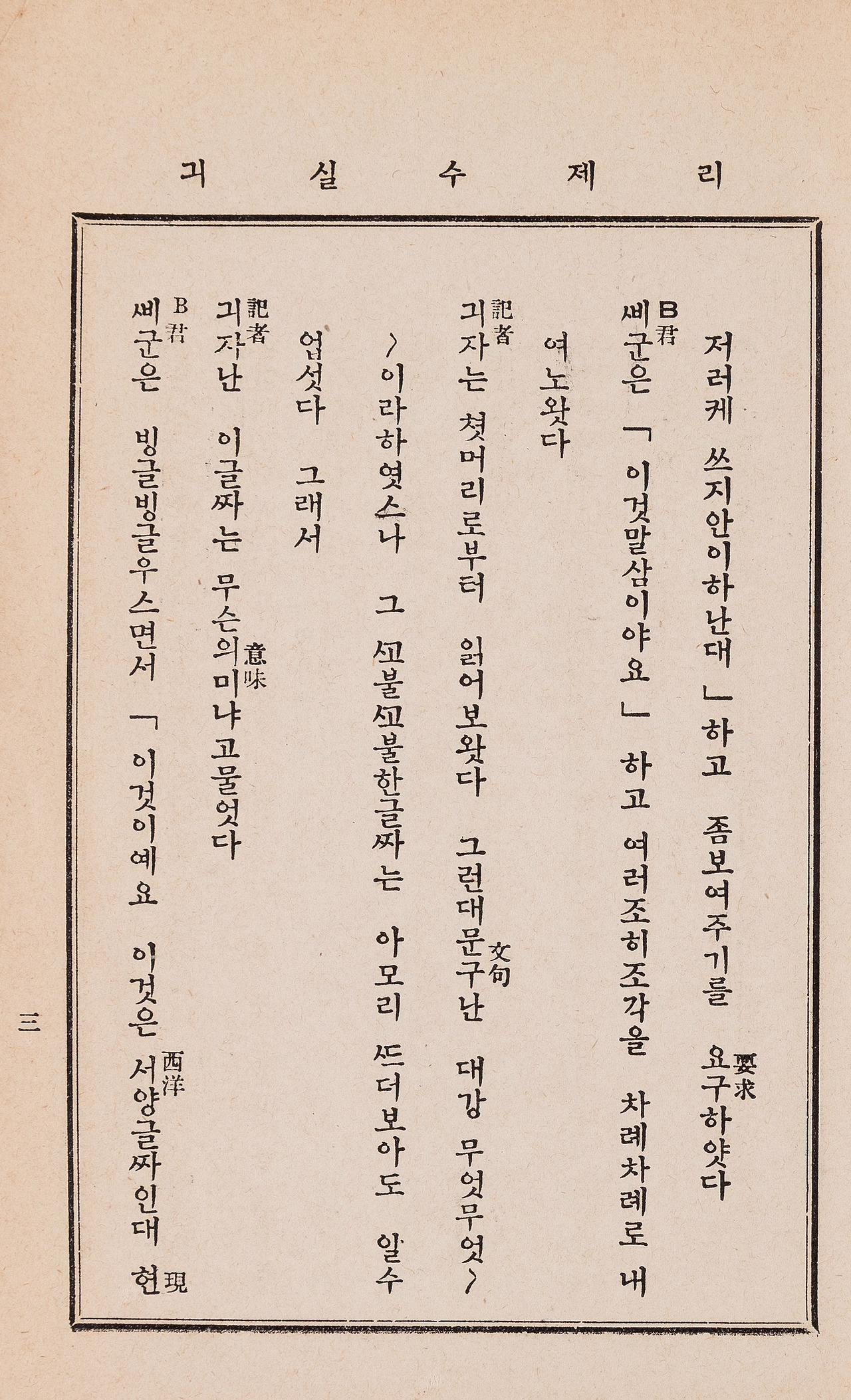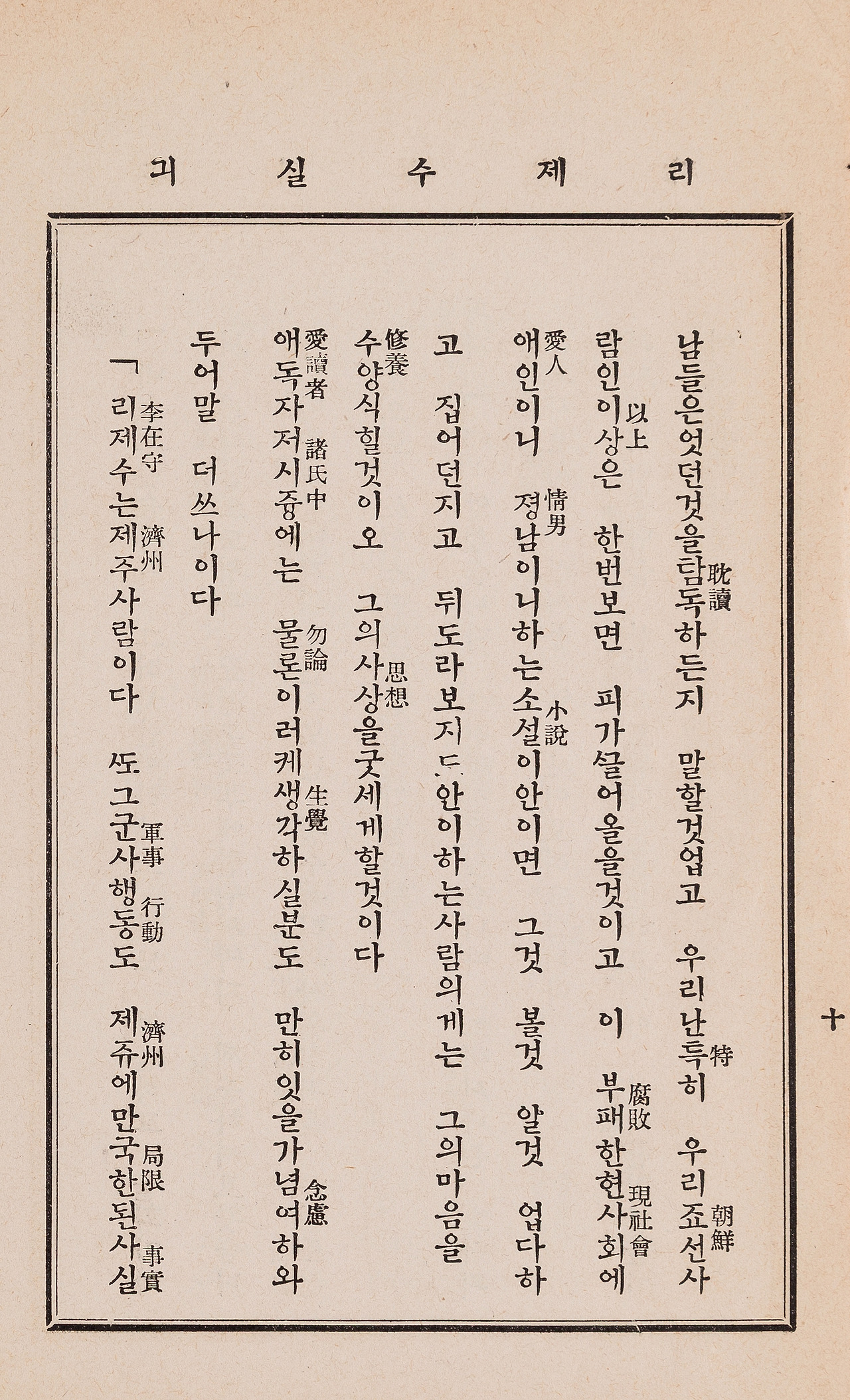당시의 첫 만남을 선생은 이렇게 그렸다. ‘이때 슌옥녀사((順玉女使)난 손수건으로 이마에 땀을 련(連)해 쓸며 양산을 외인손에 마라죄고 들어왓다.’ 선생을 마주한 순옥은 이렇게 하소연을 하는 것이다. “하도 억울하고 울화가 나서 전라남도 도청과 죠선총독부(朝鮮總督府)에 탄원서까지 제출하여 보왓슴니다. 이 무식한 여자의 소견으로난 될수록 리이사(李義士)의 실긔(實記)를 우리 조선 국문으로 쓰엇스면 조흘 줄로 생각합니다.” 이후 선생은 순옥의 이야기를 골간으로 이재수실기 쓰기에 혼신을 다한다.