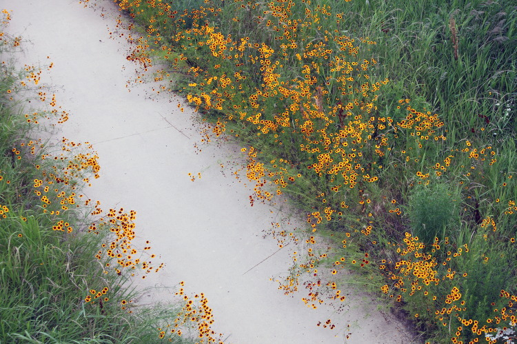 뜨거웠던 여름날, 한적하다 못해 적막한 바닷가 고향 마을 길가 아무 데나 피던 기생초. 햇살 뜨거운 한여름 대낮, 마을은 나비들 날갯짓조차 들리는 듯 고요했다. 꿈길인가, 몽환에 빠지던 유년의 여름 한낮, 시골길은 아늑하면서도 외로운 기분에 빠지게 했다. 이 기생초는 그 추억으로 들어가는 통로다. 어린 날의 그리운 별꽃, 아니 기생초!