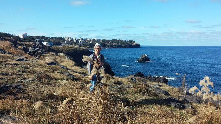 내 고향 마을 구엄리 해변에 바싹 붙어 제주올레 16코스가 지나가는데, 철무지개¹⁾ 구엄포구에서 서쪽으로 조금 걸어가면 ‘몰(馬) 털어진 기정’이 나온다. 제주 사람들은 절벽을 '기정'이라 부른다. 말이 떨어져 죽은 절벽! 여기서부터 길은 오르락내리락하면서 남또리 기정²⁾까지 검고 거친 현무암 벼랑길을 따라 이어진다.