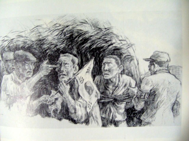 강요배의 '동백꽃 지다' 중에서 <태극기 강매>