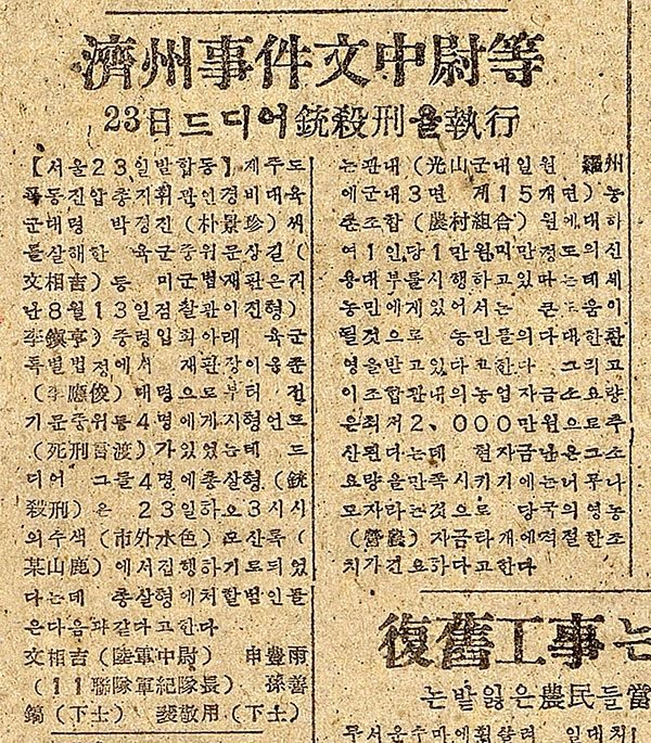 제주 도민을 토벌하라는 명령을 내린 지휘관을 암살한/국군이 국민에게 결코 총부리를 겨눌 수 없다던 대한민국 제1호 사형수 문상길 중위/고향이 어디인지 누구도 알 수 없었던/역사의 뒤안길에 묻힌 향년 스물셋 사내, 고향은 안동