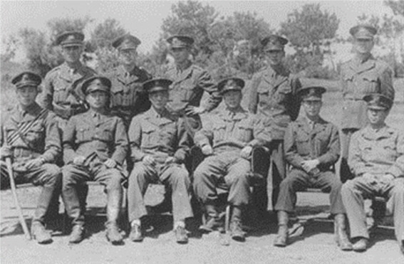 제주도 모슬포 주둔 제9연대의 장교들-아랫줄 오른편 끝이 문상길 중위이며, 맨 왼쪽이 이세호 대위, 두사람 건너 연대장 김익렬 대령, 그 다음은 심흥선 대위.