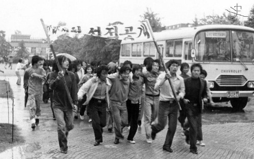 똑똑히 기억하는 그 노래를 따라, 당신은 홀린 듯 그 버스가 사라진 방향으로 걸었다. 수십만의 군중이 거리 곳곳에서 몰려들어 광장으로 향하고 있었다. 이른 봄부터 스크럼을 짜고 몰려다니던 대학생들은 보이지 않았다. 노인들, 초등학생 아이들, 작업복 차림의 남녀 공원들, 넥타이를 맨 젊은 남자들, 투피스에 힐을 신은 젊은 여자들, 그것도 무기라고 장우산을 들고나온 새마을 점퍼 차림의 아저씨들, 그 모든 사람들의 행렬 앞에, 신역에서 총을 맞은 청년들의 시신 두 구가 수레에 실려 광장으로 나아가고 있었다.