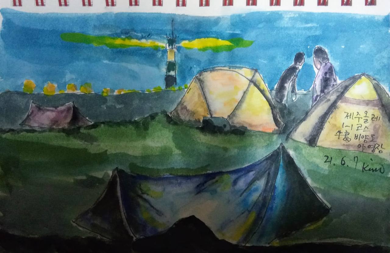 마음 편한 야영은 우도의 비양도가 처음이자 마지막이었다. 이후 걸었던 코스에는 야영지 이용제한이니 취사금지니 하는 빨간 글씨의 안내문이 곳곳에 세워져 있었다. 표선해수욕장에선 할 수 없이 정자 지붕 아래서 슬리핑백만 펴고 잠을 잤다. 마지막 야영지였던 하모해수욕장은 저녁이 되자 화장실은 문이 잠기고, 수도꼭지는 물이 말라버렸다. 매정함을 느꼈다.