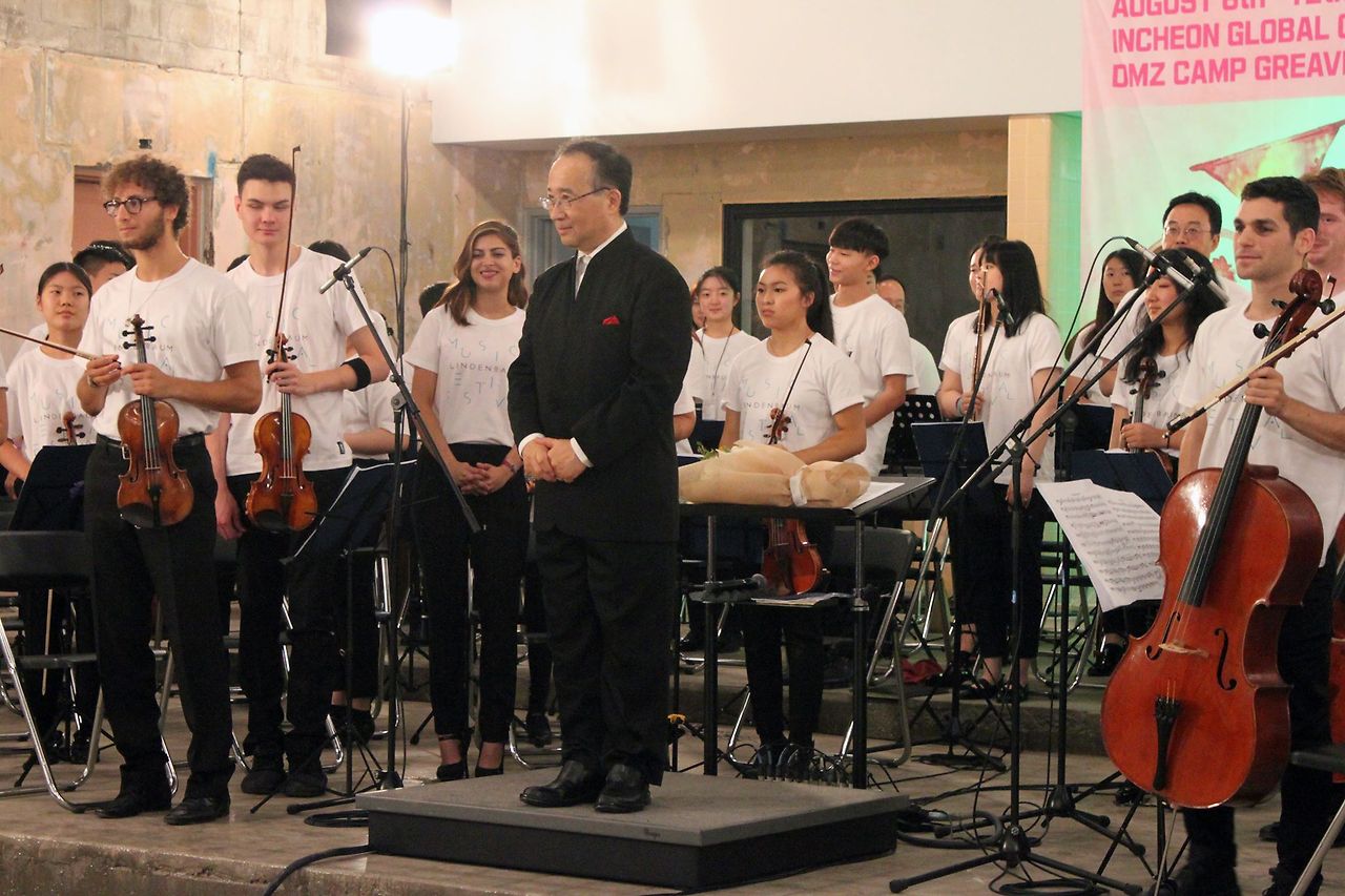 •2018년 8월 9일 일요일 DMZ Camp Greaves에서 예일심포니 오케스트라 지휘자 Toshiyuki Shimada가 지휘하는 평화콘서트를 감상했다. 연주곡은 레오나드 번스타인의 ‘캔디드’와 타드 마크오버의 ‘Fence-a-Dance’, 그리고 마지막으로 안톤 드보르작의 교향곡 9번 ‘신세계로부터’였다. 특히 ‘귀향(歸鄕)'으로 알려진 교향곡 9번의 제2악장은 감동이었다. 이번 캠프 그리브스의 평화콘서트에 드보르작의 교향곡 9번이 선정된 것도 바로 2악장 때문이었다. 분단되어 흩어진 사랑의 마음이 서로의 품으로 ’귀향‘할 수 있기를 바라는 뜻이 담긴 것이다. 분단의 상징 DMZ에서, 세계 각지에서 온 젊은 연주자들이 토시유키 시마다의 지휘로 선사한 안톤 드보르작의 선율은 특별하고 아름다웠다.