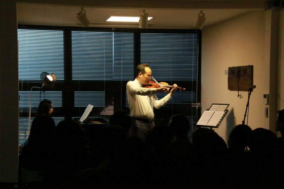 On the evening of June 27, the cloudy skies of the barley rainy season in Jeju City, Yeonsam-ro, dwindled over the streets. I went to the art and culture space 'Nouveau'. It was to participate in the violin performance and Art Talk of Won Hyung Joon, titled 'Music is Peace'. It was a priceless opportunity for the performer and audience to feel each other's breathing in front of the nose and to play and appreciate the violin. Although the performance stage and facilities were rather poor, I could concentrate on each piece of music by listening to the player's song description directly. All five songs were great performances. Among them, Sarasate 's "Chichoi Nerbaizen" received the biggest applause.