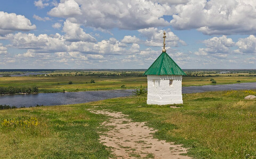 숲속의 계곡이 황톳빛 오카강¹으로 완만하게 이어져 있다. 계곡 아래로 계곡물이 풀숲을 헤치며 달려간다. 밤이 되면 계곡 하늘 위에는 낮에는 보이지 않던 푸르른 하늘의 강이 떨리듯 흘러가고, 별들이 그 속에서 황금 농어²처럼 노닌다.