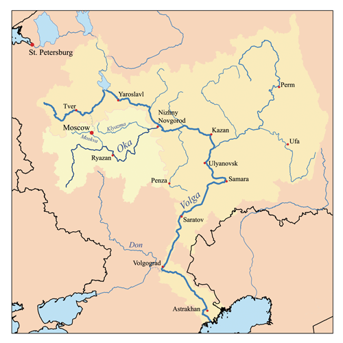 1) 오카(Ока́)강은 길이 1,480㎞, 유역면적 24만5천㎢인 볼가강 최대의 지류이다. 중앙러시아 고지(해발 고도 260m)에서 발원한다. 이 강에 접해 있는 도시는 콜롬나, 니즈니노브고로드, 제르진스크, 랴잔, 오룔 등이다.