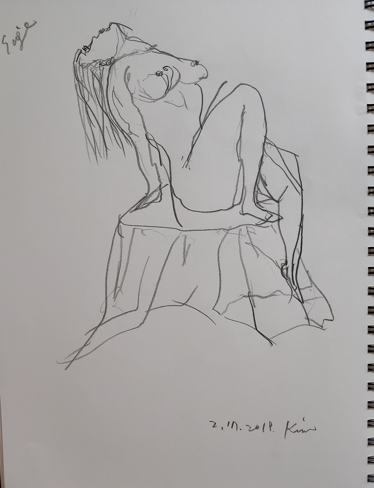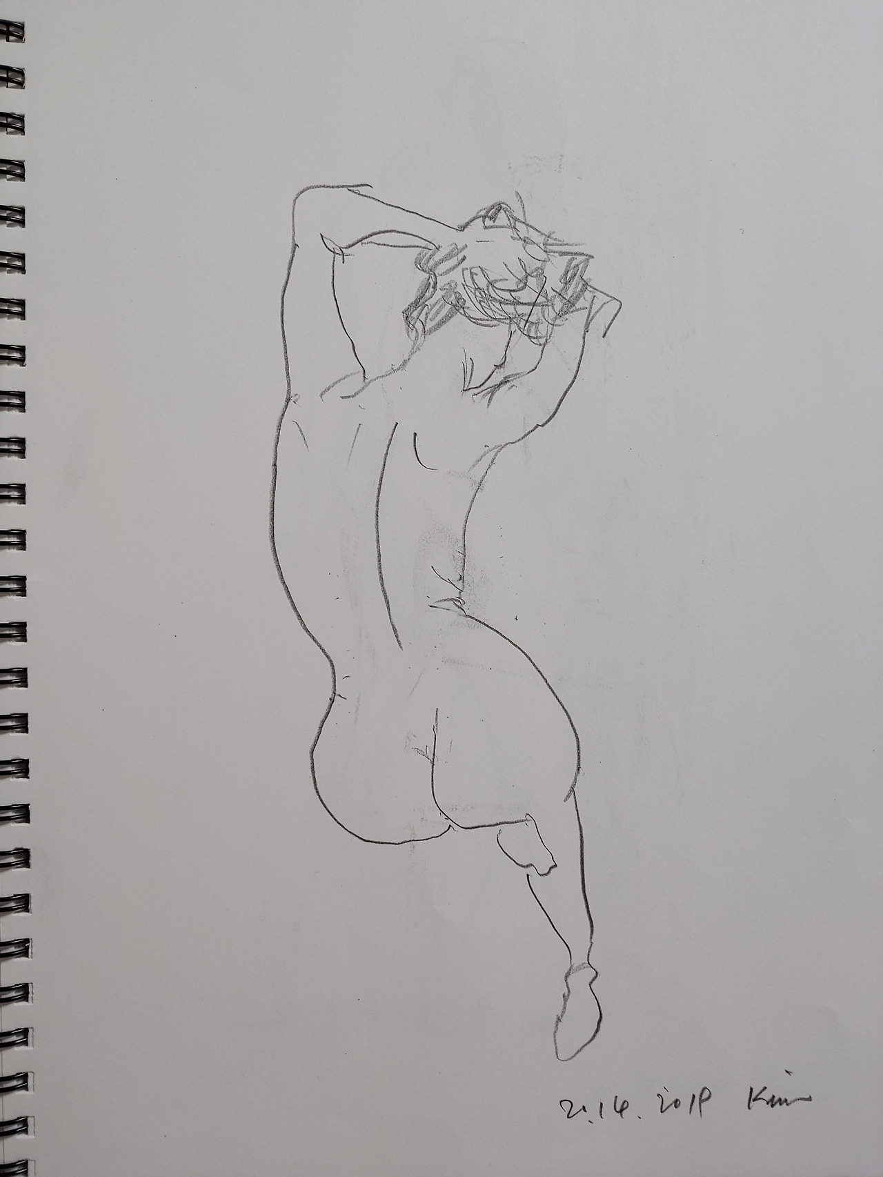 도서관에서 그림책 하나를 빌어왔다. 예습 삼아 모사를 해봤다. 초보가 누드라니, 아름답게 그리기란 너무 어렵다!