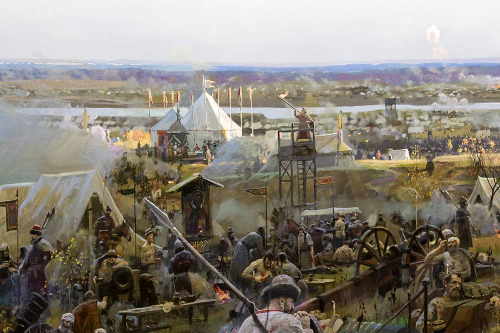 ◼ 강을 사이에 둔 대치: 몽골군은 강을 건너려 시도했으나, 화포와 총기로 무장한 러시아군의 강력한 저항에 가로막혔습니다.