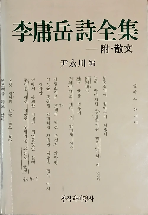 尹永川 編 『李庸岳詩全集』(창비1988) 中.