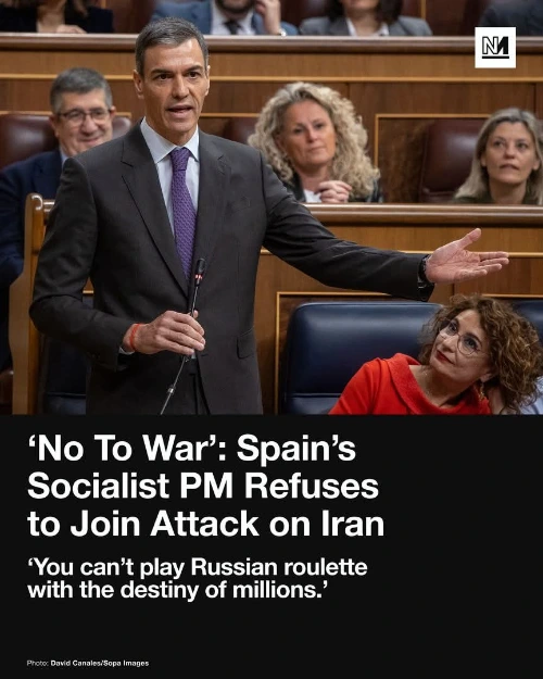 스페인의 사회주의 성향 총리 페드로 산체스(Pedro Sanchez)가 미국과 이스라엘이 주도하는 이란 공격에 가담하기를 거부하며, 자신의 입장을 세 단어로 요약했습니다: "전쟁 반대(No to war)."