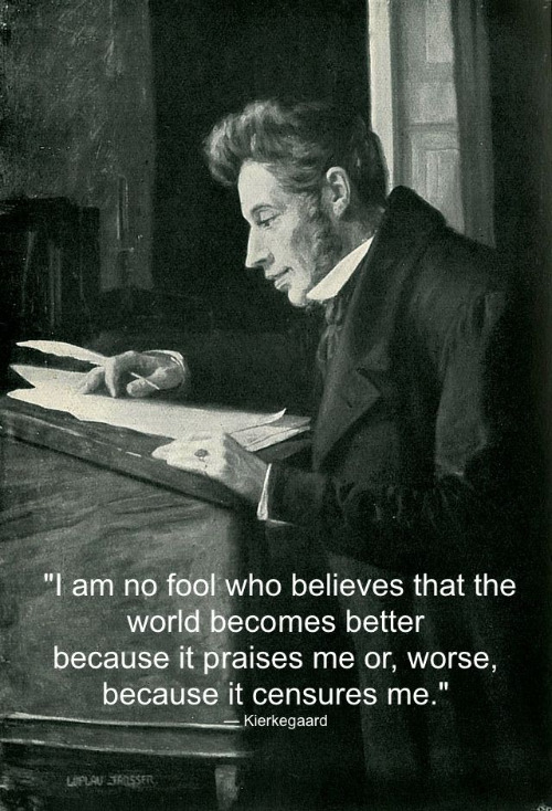 “세상이 나를 칭찬한다고 해서 좋아지는 것도 아니고, 비난한다고 해서 나빠지는 것도 아니라는 것을 나는 안다.” — 키르케고르