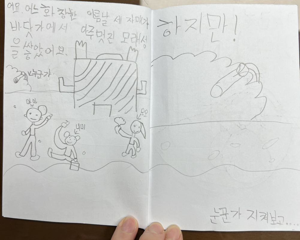 그리고 무무가 살고 있었어요. 셋은 매일 바닷가에 나가 놀았답니다."