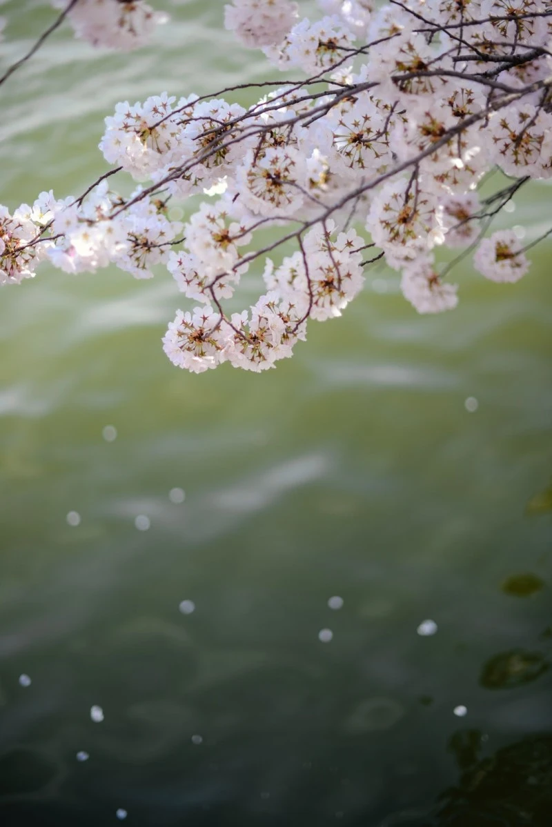 창백한 벚꽃들이 오솔길 하늘을 이불처럼 덮었다.