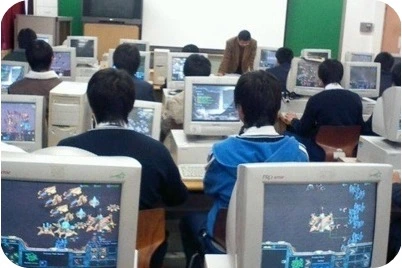 예전 컴퓨터실에서 게임을 즐기는 모습