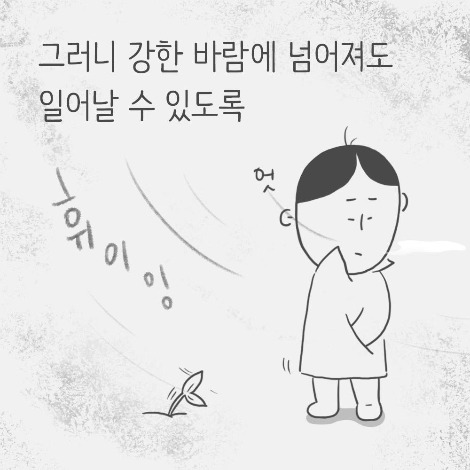 고된 비바람에 삶을 부여잡는 많은 새싹들이 잘 견뎌내었으면 좋겠습니다. 겨울이 지나 봄에는 더 많은 꽃을 피우고, 더 많은 열매를 맺기를요. 시간이 지나 이 모든 것을 웃으며 얘기하는 그날까지요.