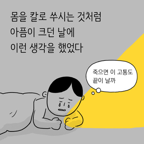 의학의 도움으로 진통제를 먹으며 살아남은 저지만, 의학이 계속 발전해서 죽음이 더 멀어질까 봐 두렵기도 합니다.
