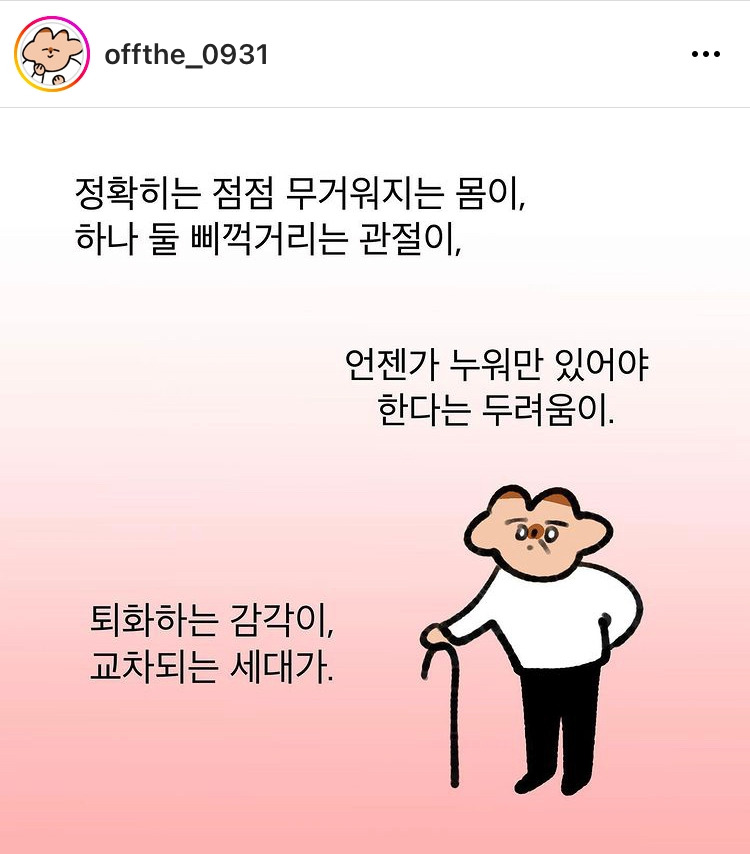 차라리 죽음보다는 '죽지 못해 사는 100세 인생('유병장수'라고 하죠..)'이 더 두려워요. 근데 그건 제가 걱정한다고 바꿀 수 있는 게 아니고요. 뭐 생각보다 죽음이 빨리 오면..? 그것도 어쩔 수 없고요. 하하.