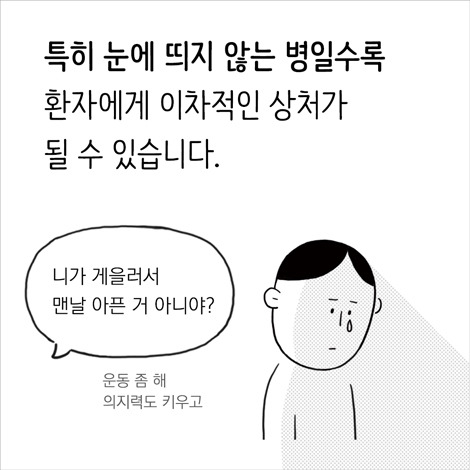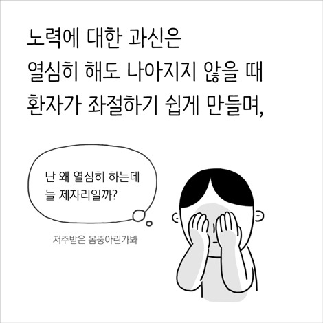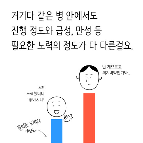 환자 스스로도, 내가 부족하다는 자책은 하지 말아요. 언제나 내 마음대로 되면 그게 병이겠어요?