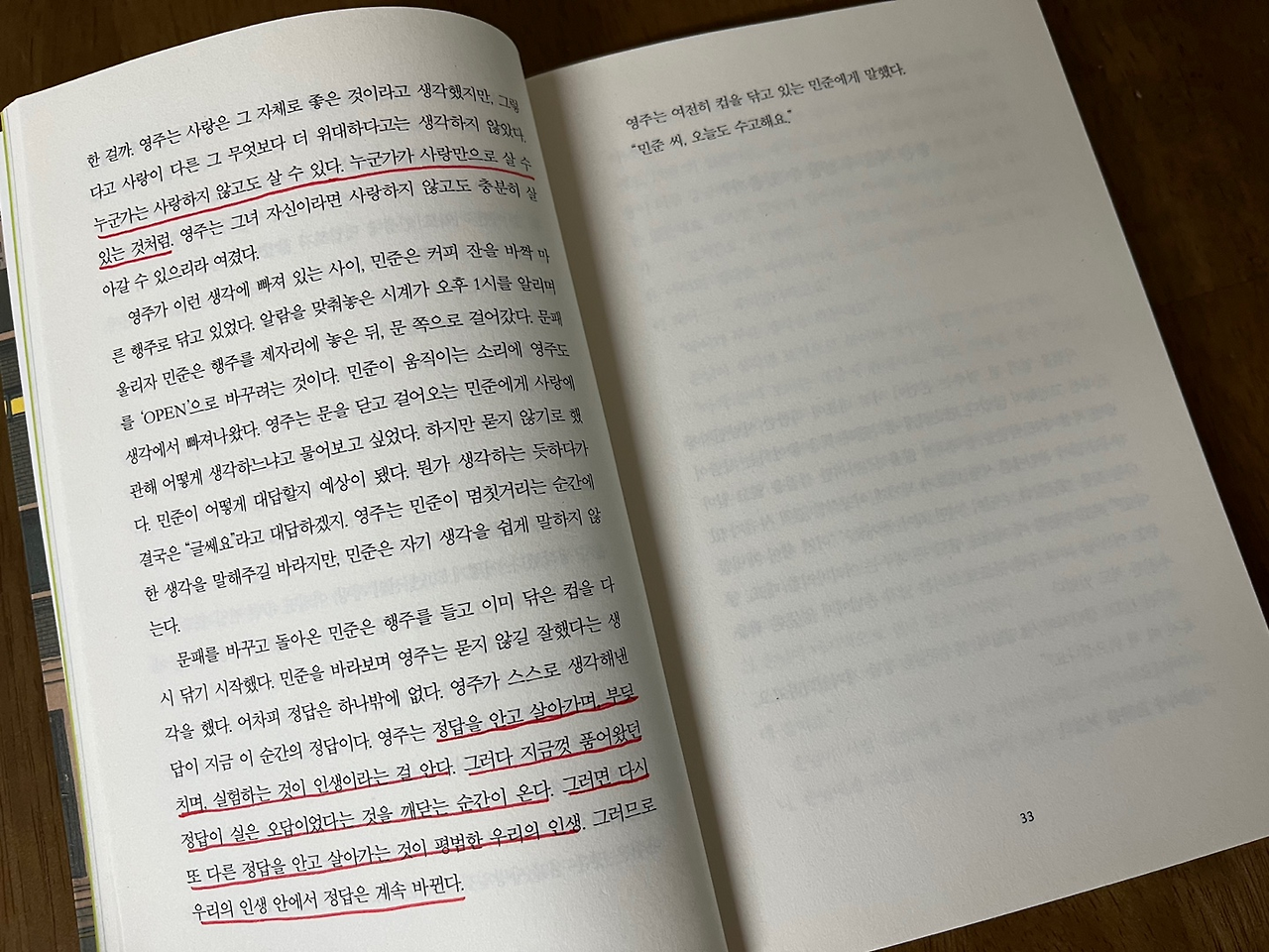 정답을 안고 살아가며 부딪히며, 실험하는 것이 인생이라는 걸 안다. 그러다 지금껏 품어왔던 정답이 실은 오답이었다는 것을 깨닫는 순간이 온다.