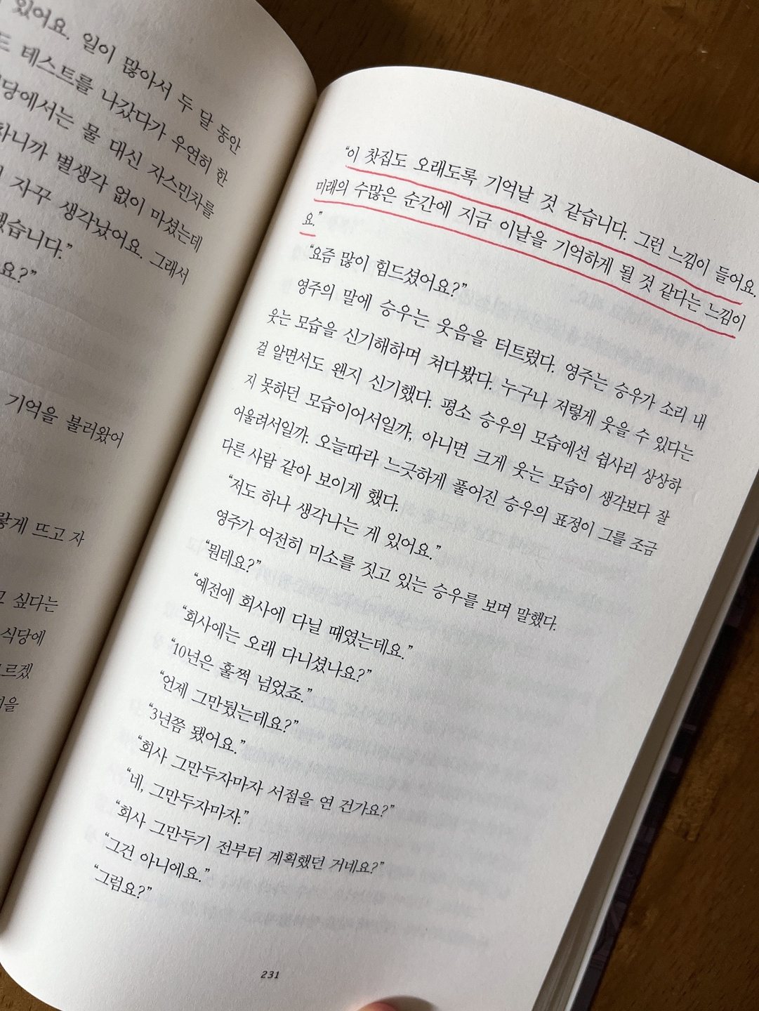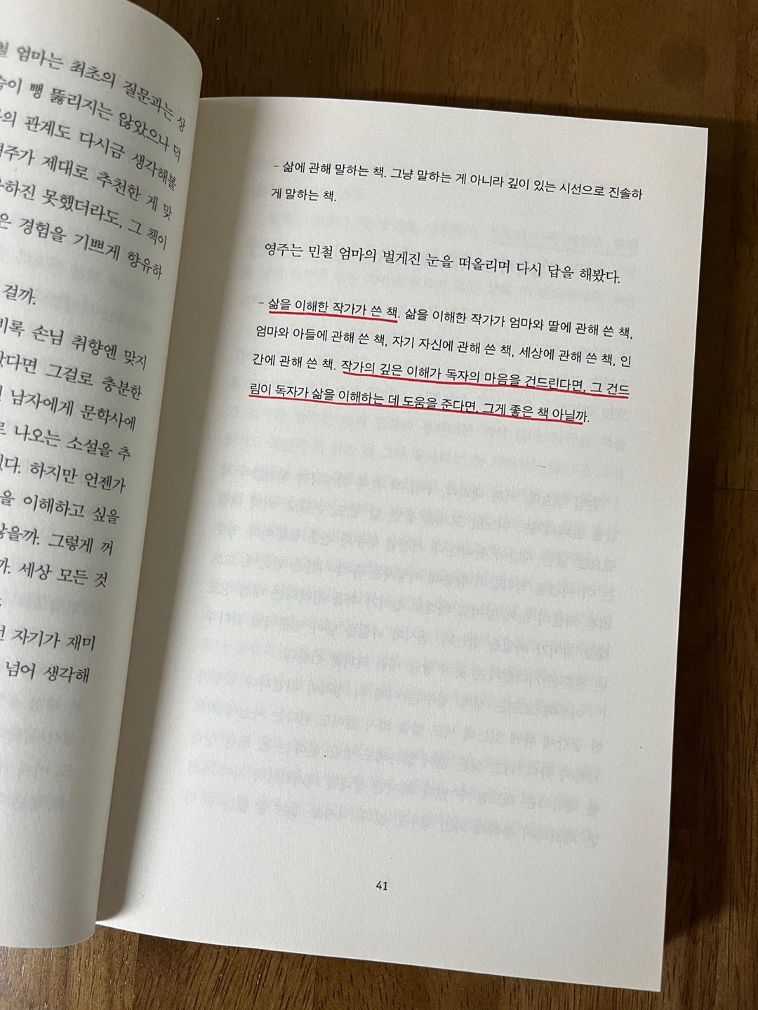 황보름 작가님이 이 작품을 통해 하고 싶은 말은 소설의 전반부에서 드러난다. 삶을 이해하는 작가였으면 한다고. 그리고 작가가 지닌 깊은 이해가 독자의 마음을 건드렸으면 한다고.
