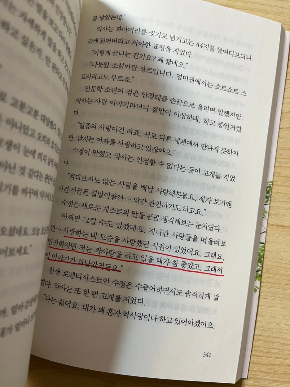 이 소설에 담긴 클리셰가 무엇이냐고 묻는다면 혜원을 좋아하고 있는 은섭과 혜원의 덤덤한 배경이 되어주는 이모가 꽤 궁금증을 자아내는 인물이라는 것. 그리고 은섭이 혜원이 생각하는 것보다 혜원의 곁을 더 오래 맴돌아왔을지도 모른다는 막연하고도 확실한 느낌이겠다. 이 클리셰들은 후반부로 넘어갈수록 더욱 촘촘히, 그리고 서서히 파스텔톤으로 물들어가기 때문에 점차적인 재미를 더한다. (게다가 설렘은 두 스푼씩 덤으로 추가된다고나 할까.)