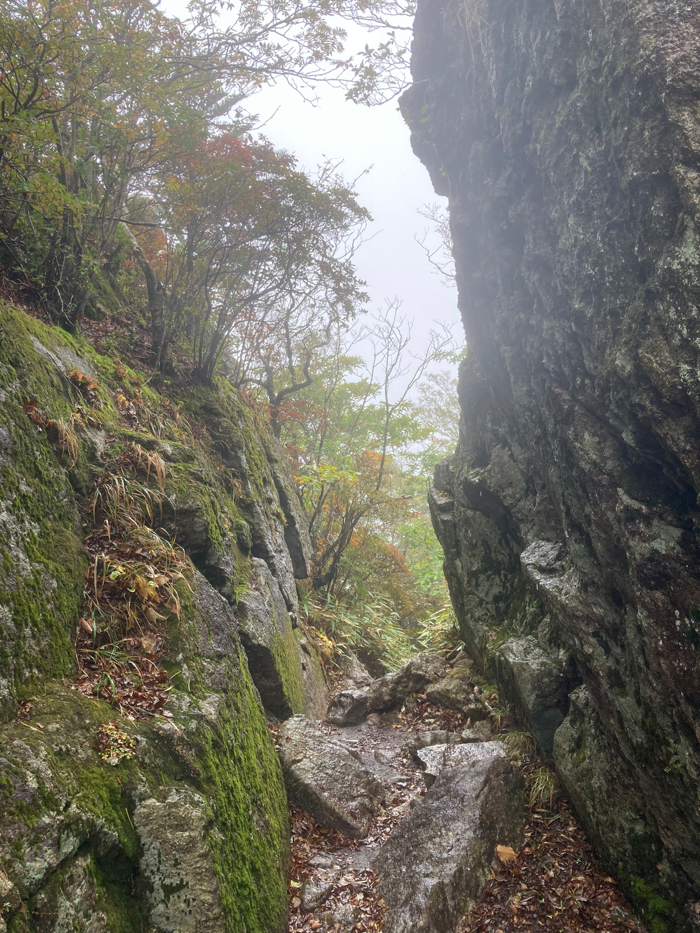 마지막 길은 능선길로 걸어가기 나쁘지 않은 길로 보였다. 그러나 그런 생각도 잠시, 조금만 걷다 보니 갑자기 바위길이 등장했다. 건너가기도 어려울 뿐더러 길도 좁았다. 설상가상 비가 와서 미끄러지기라도 한다면 그야말로 실족할 것 같은, 골로 갈 것 같은 그런 곳이었다. 이런 길을 10킬로 정도 되는 배낭을 메고 지나가야 한다니, 미쳤다 생각하면서 어쩌겠어를 생각하면서 계속 간다. 지리산을 오겠다는 것을 후회할 생각도 안 들었다. 정신을 다른 데로 팔면 정말 목숨이 위험할 거 같기 때문에. 나의 발목이 이를 견뎌낼 수 있을까. 친구야 제발 버텨주라. 제발제발제발. 이 산은 잘 내려가야 하지 않겠니. 좀만 힘내자.